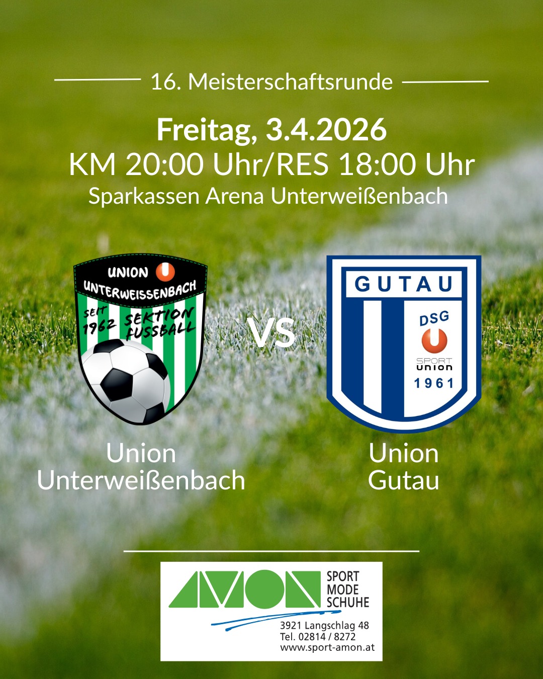 Am Freitag, den 3. April 2026, steht für unsere Union Unterweißenbach die 16. Meisterschaftsrunde an. Nach zwei Siegen in Folge der KM und einem starken Auftritt unserer Reserve mit ebenfalls einem Sieg gehen wir mit viel Selbstvertrauen in das nächste Heimspiel gegen Union Gutau!